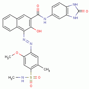 Зохиомол нэр:2-Naphthalenecarboxamide, N-(2,3-dihydro-2-oxo-1H-benzimidazol-5-yl)-3-hydroxy-4-((2-methoxy-5-methyl-4-((methylamino)sulfonyl)phenyl)azo)-; 2-Naphthalenecarboxamide, N-(2,3-dihydro-2-oxo-1H-benzimidazol-5-yl)-3-hydroxy-4-(2-(2-methoxy-5-methyl-4-((methylamino)sulfonyl)phenyl)diazenyl)-; N-(2,3-Dihydro-2-oxo-1H-benzimidazol-5-yl)-3-hydroxy-4-((2-methoxy-5-methyl-4-((methylamino)sulphonyl)phenyl)azo)naphthalene-2-carboxamide; 12516; Deep Scarlet; Permanent Carmine HF4C; Peony Red [HO]; ; (4Z)-4-{2-[2-methoxy-5-methyl-4-(methylsulfamoyl)phenyl]hydrazinylidene}-3-oxo-N-(2-oxo-2,3-dihydro-1H-benzimidazol-5-yl)-3,4-dihydronaphthalene-2-carboxamide